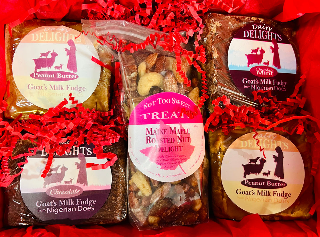 Dairy Delights Goat’s Milk Fudge & “Not Too Sweet Treats” Maine Maple Roasted Nuts Party Boxes